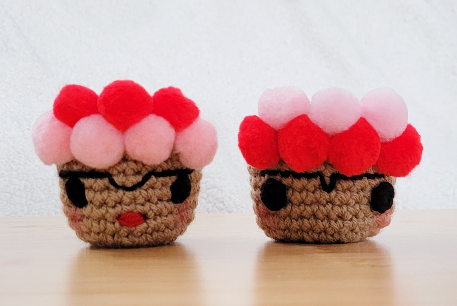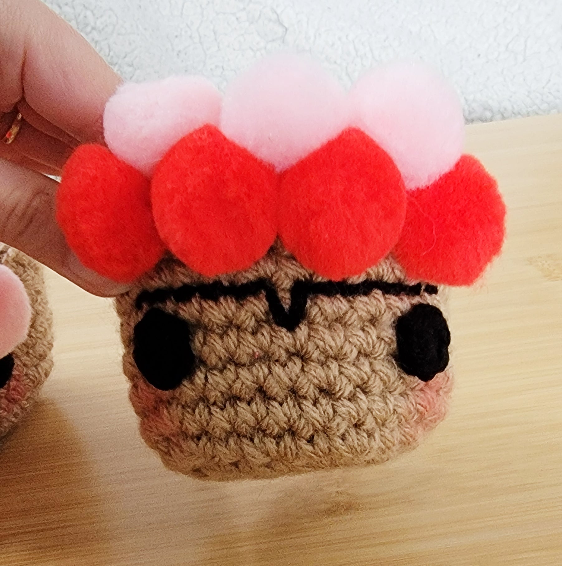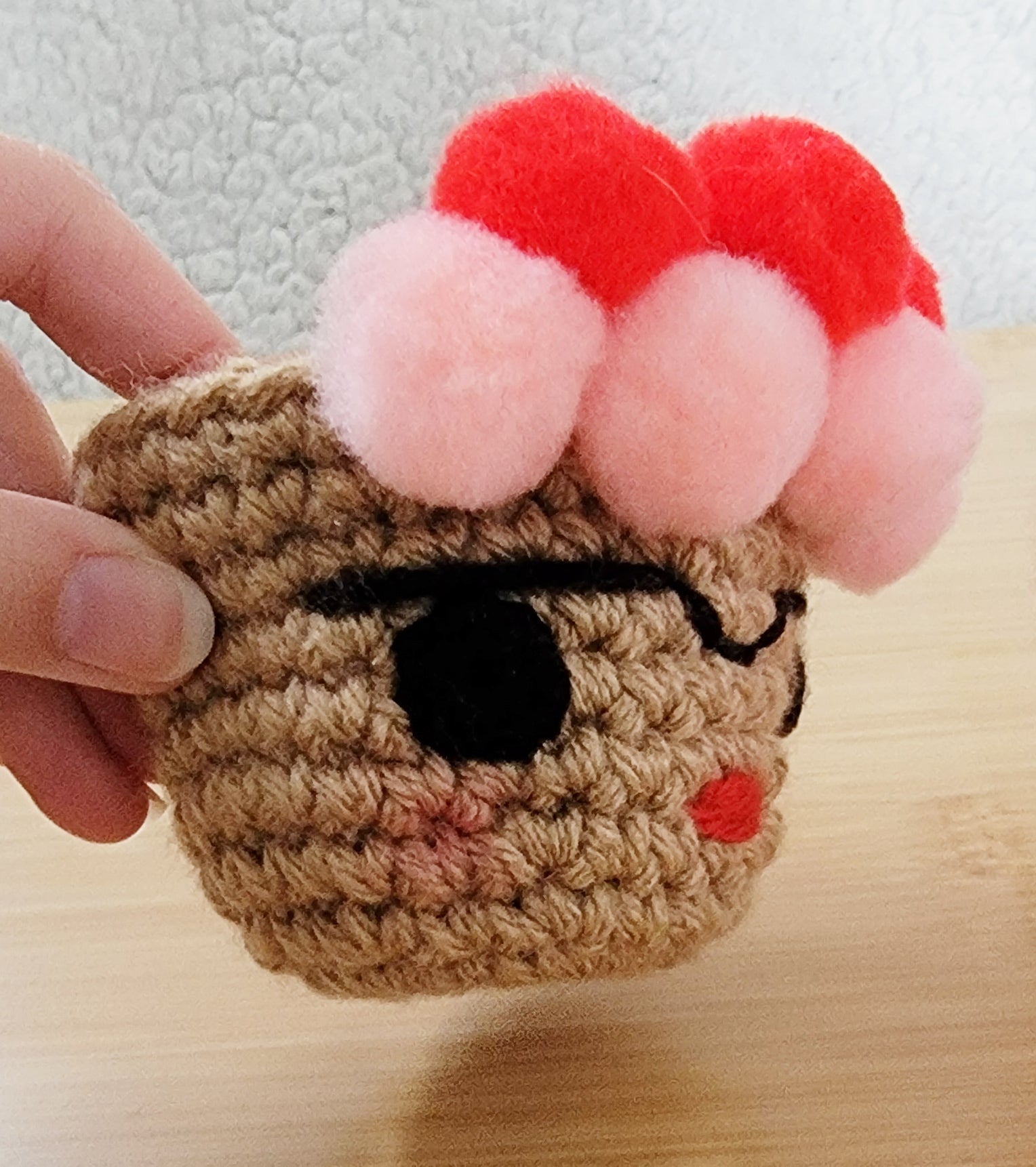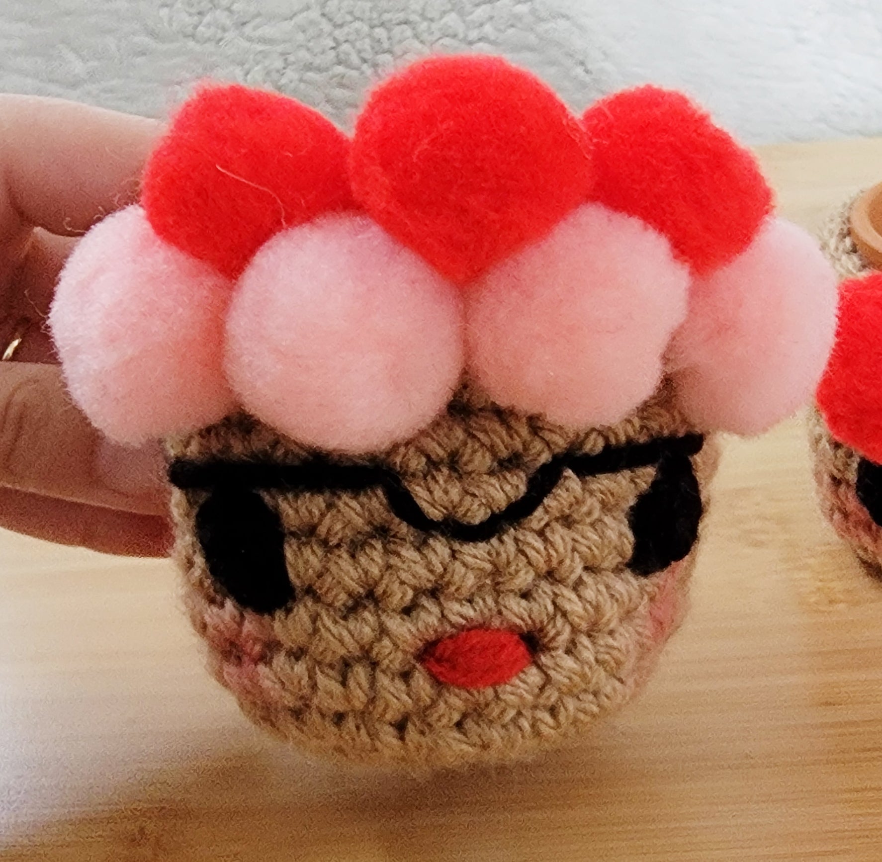 A sweet little pot cover depicting your favorite artist with a unibrow. I hope she likes pompoms, cuz I gave her a whole crown of pom poms.