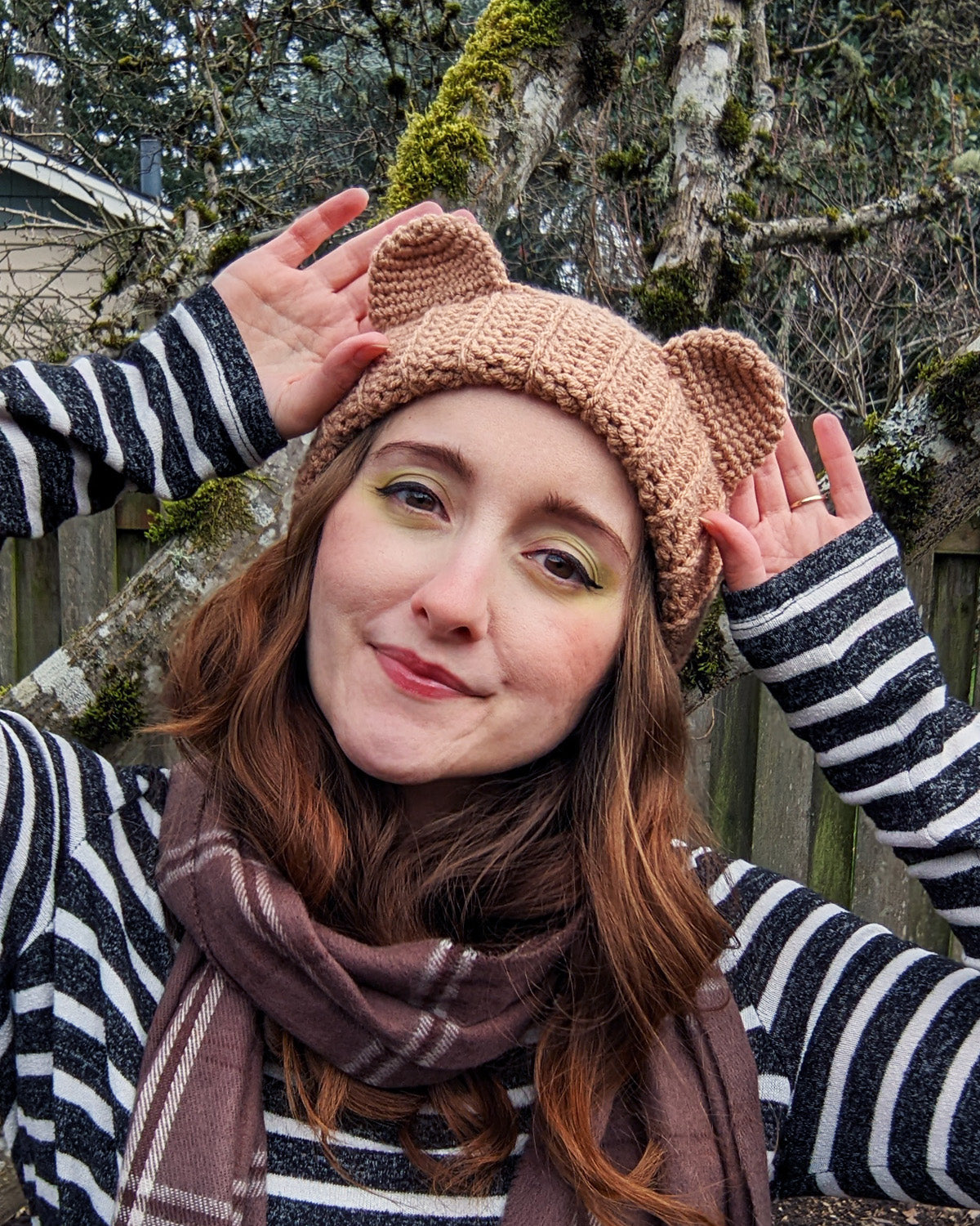 An adorable slouchy bear beanie. She's slouchy, she's got bear ears, what more could you need? You will receive the hat I made to create the crochet pattern-the exact hat that's in the photos.